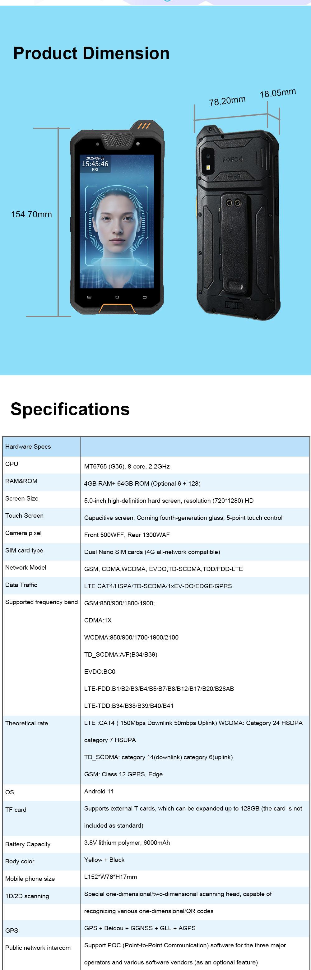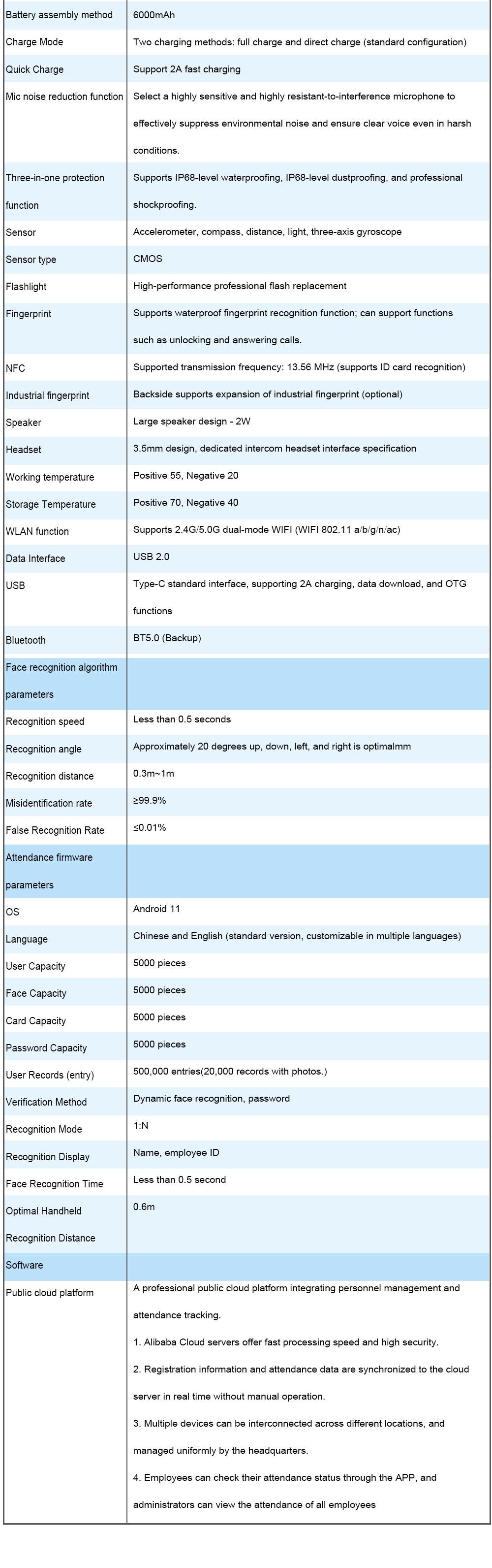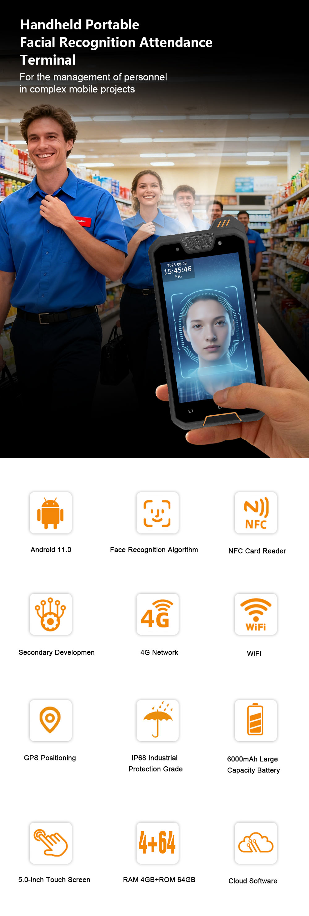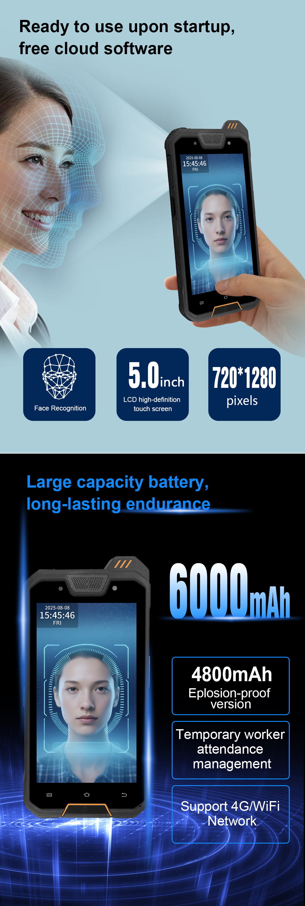 HF6 Handheld Portable Facial Recognition Attendance Terminal